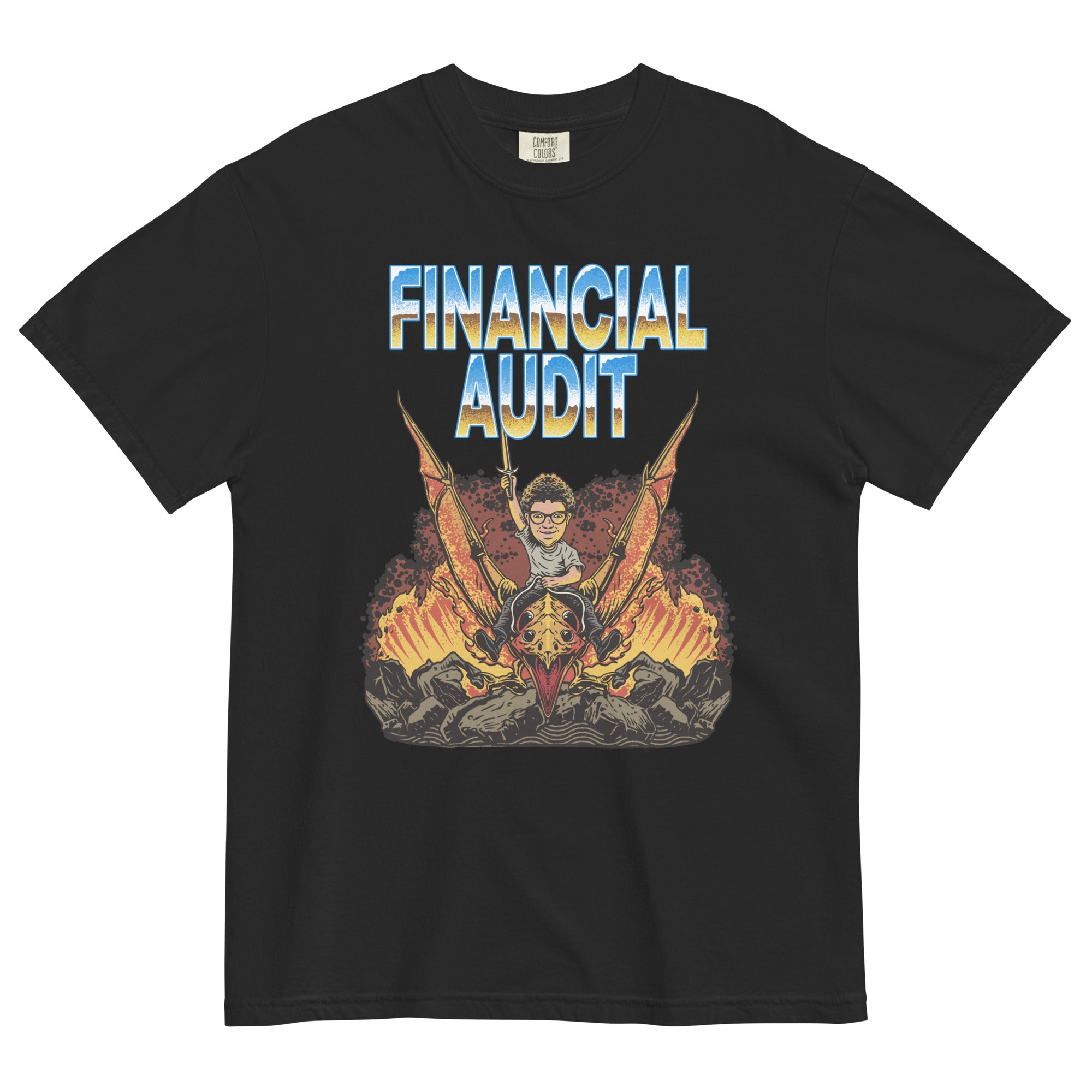 Printed on a garment-dyed heavyweight tee that is tougher than your student loans, this shirt features the Supreme Leader of the Financial Audit slaying the dragons of bad spending. Buy it with a debit card, or don't buy it at all.